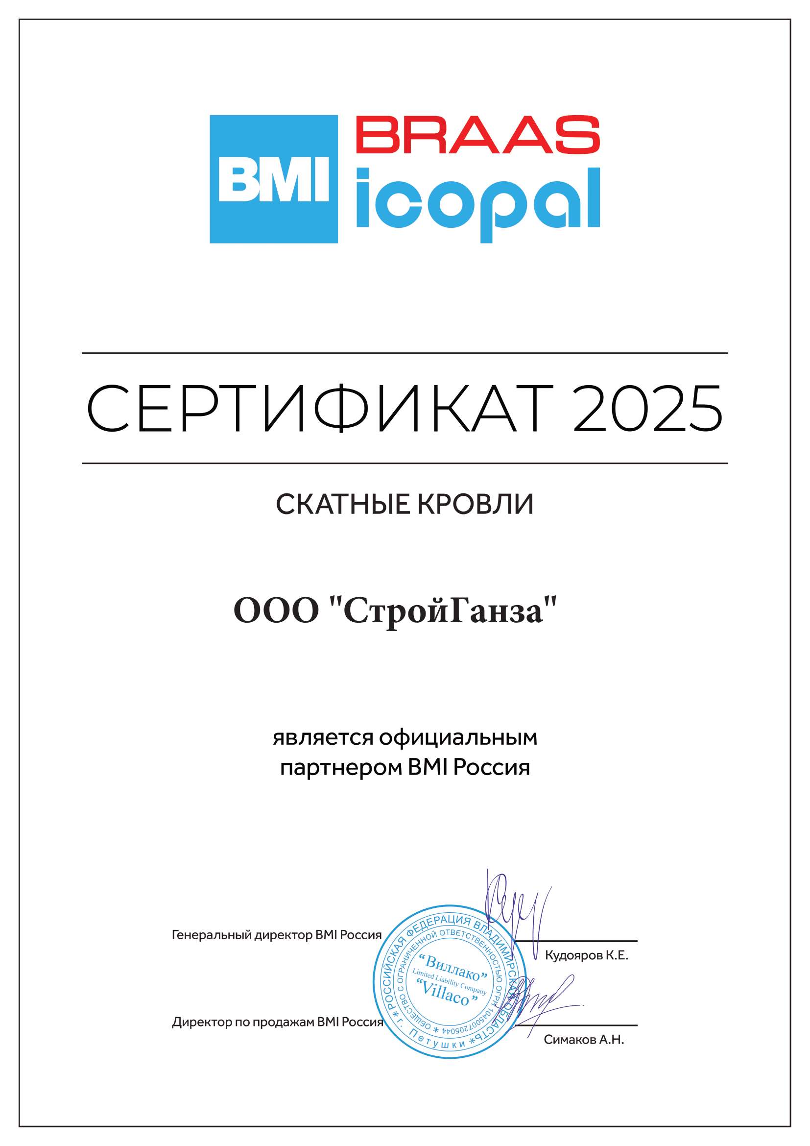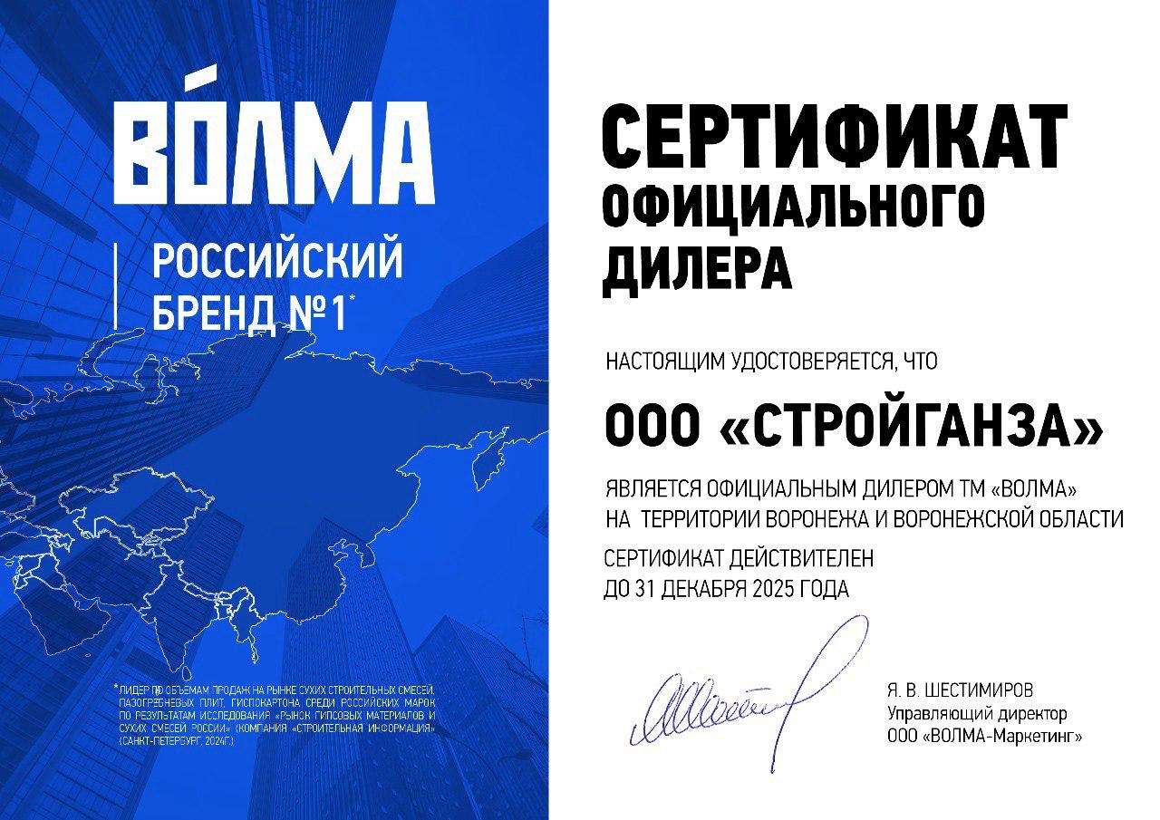 Сертификат официального дилера Волма
